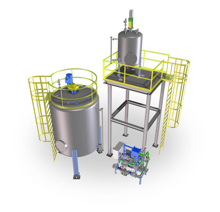 Bulk storage systems for larger volumes of chemicals include unloading stations for materials delivered by tanker truck or rail car, storage tanks, transfer pumps and all required controls, valves, instrumentation, safety devices and piping.